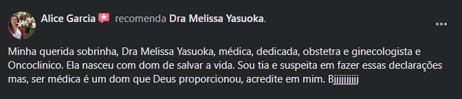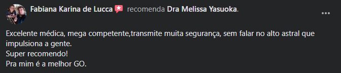 Com mais de 22 anos de experiência da Dr.a Melissa Yasuoka na especialidade de ginecologia, combinamos conhecimento multidisciplinar, tecnologia de ponta e uma abordagem centrada em você.